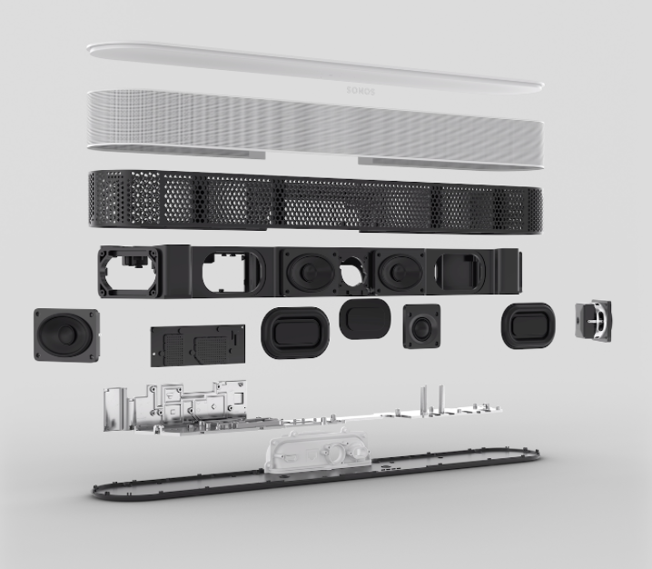 - Gestroomlijnder design: Een bijgewerkte en met hoge precisie geperforeerde grille van polycarbonaat zorgt ervoor dat de speaker geweldig klinkt en naadloos in het interieur van je huis past, net als Sonos Arc.